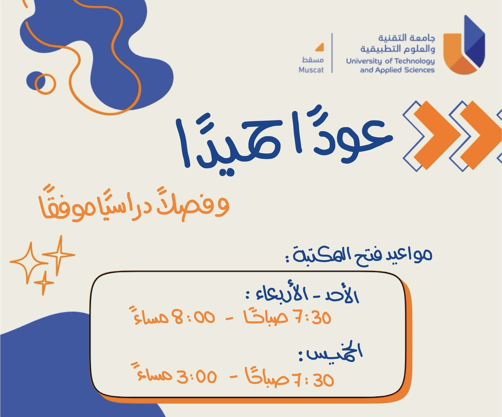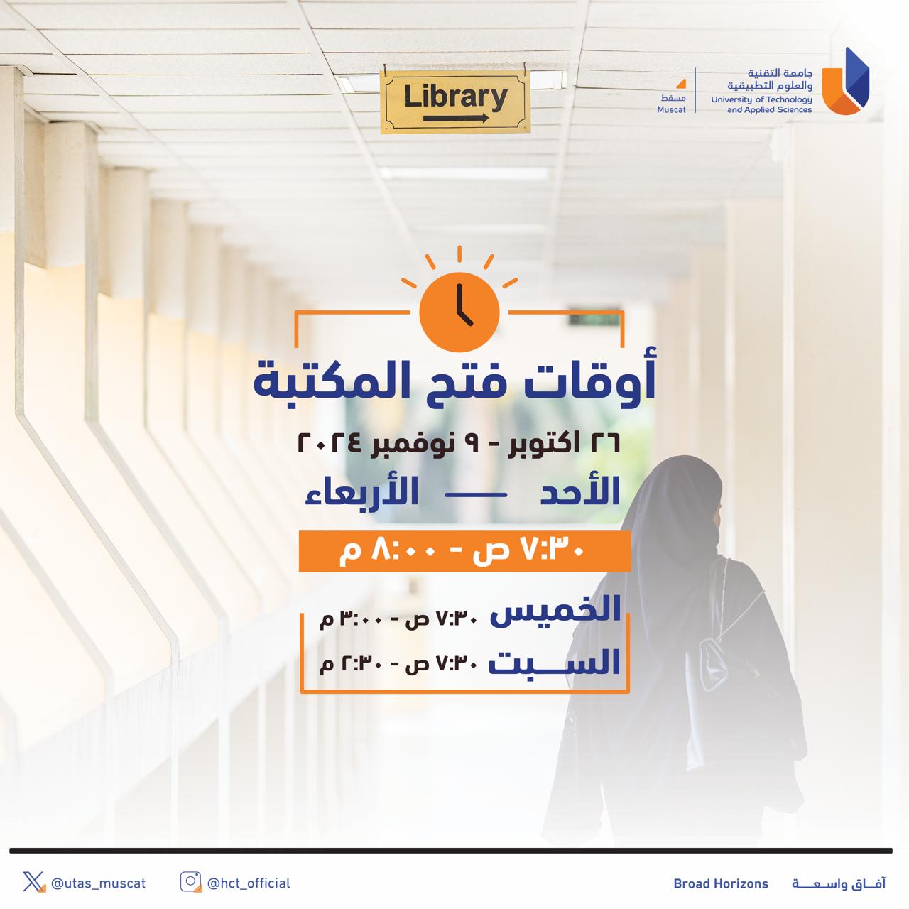 الأحد - الأربعاء: 7:30 صباحًا - 8:00 مساءً