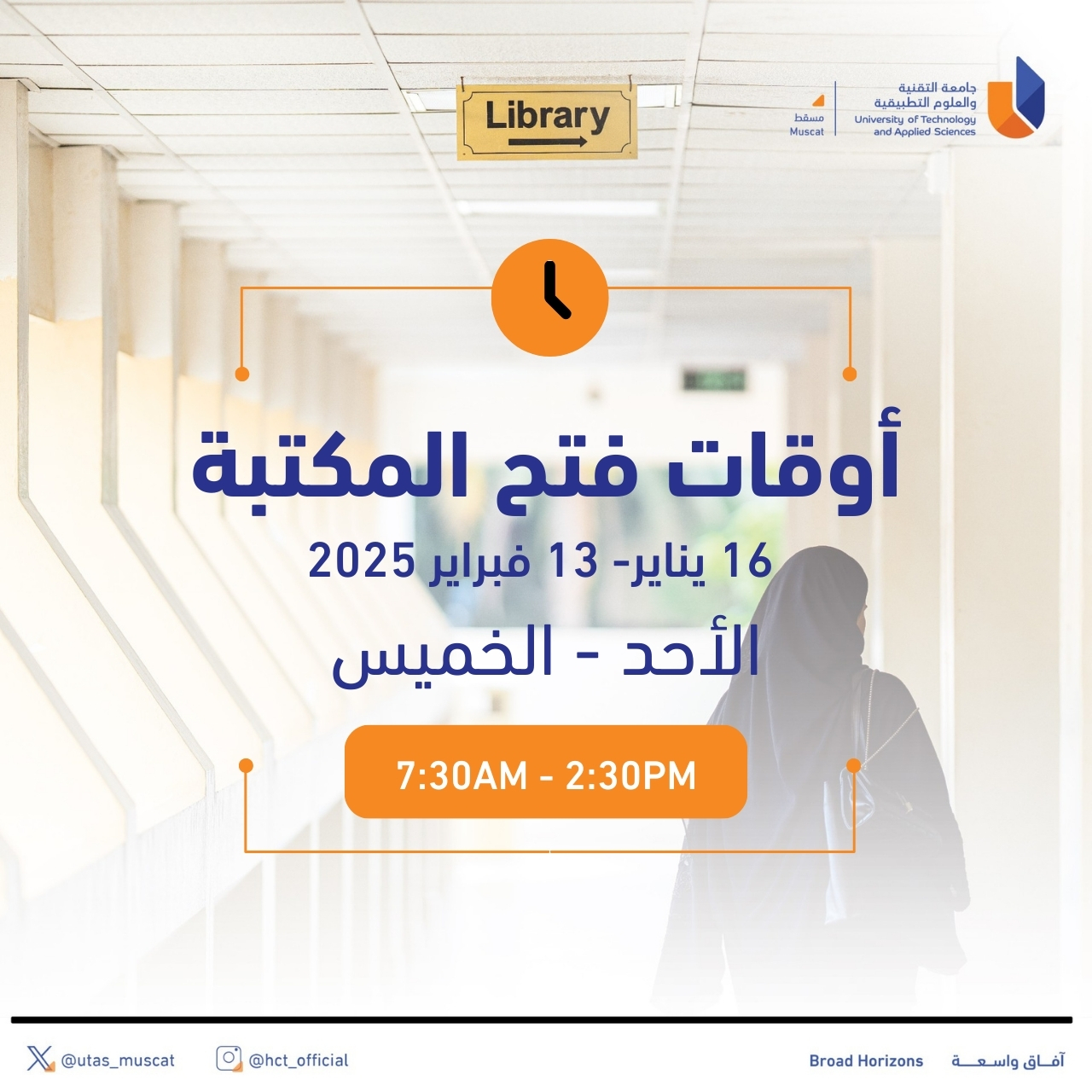 الخميس: 7:30 صباحًا - 2:30 ظهرًا