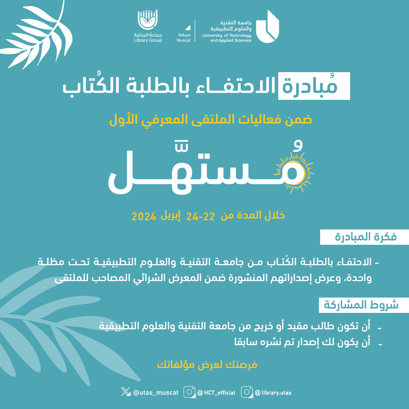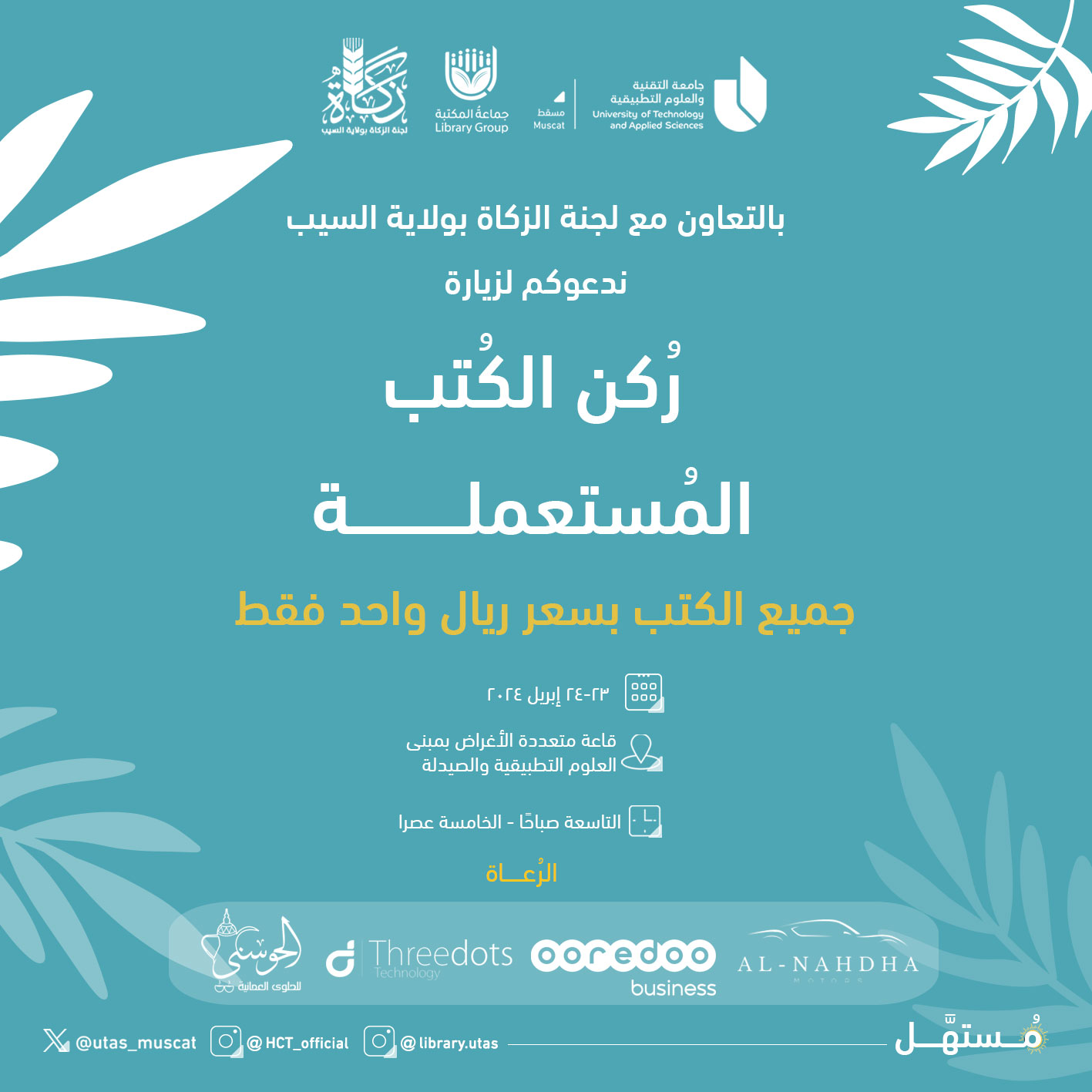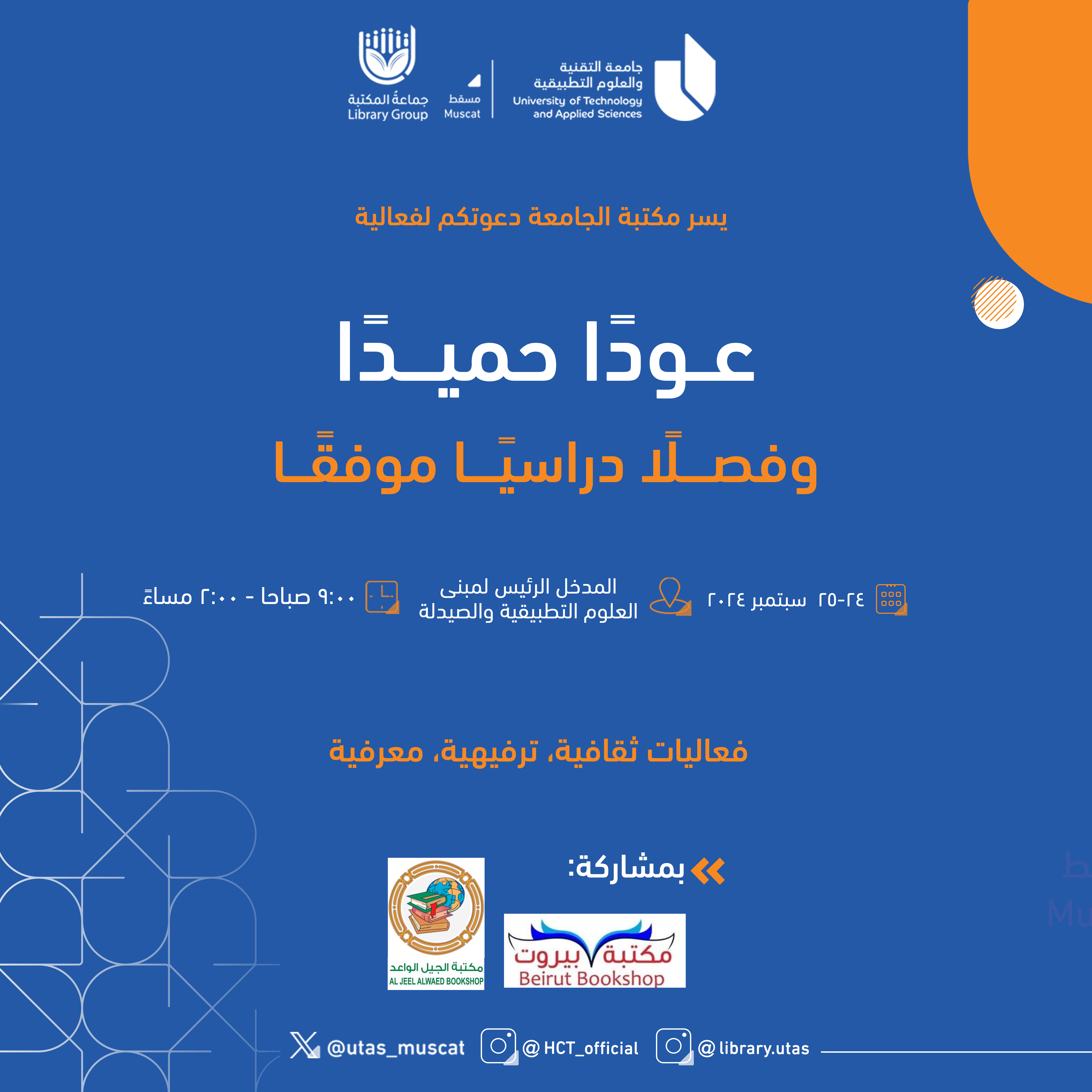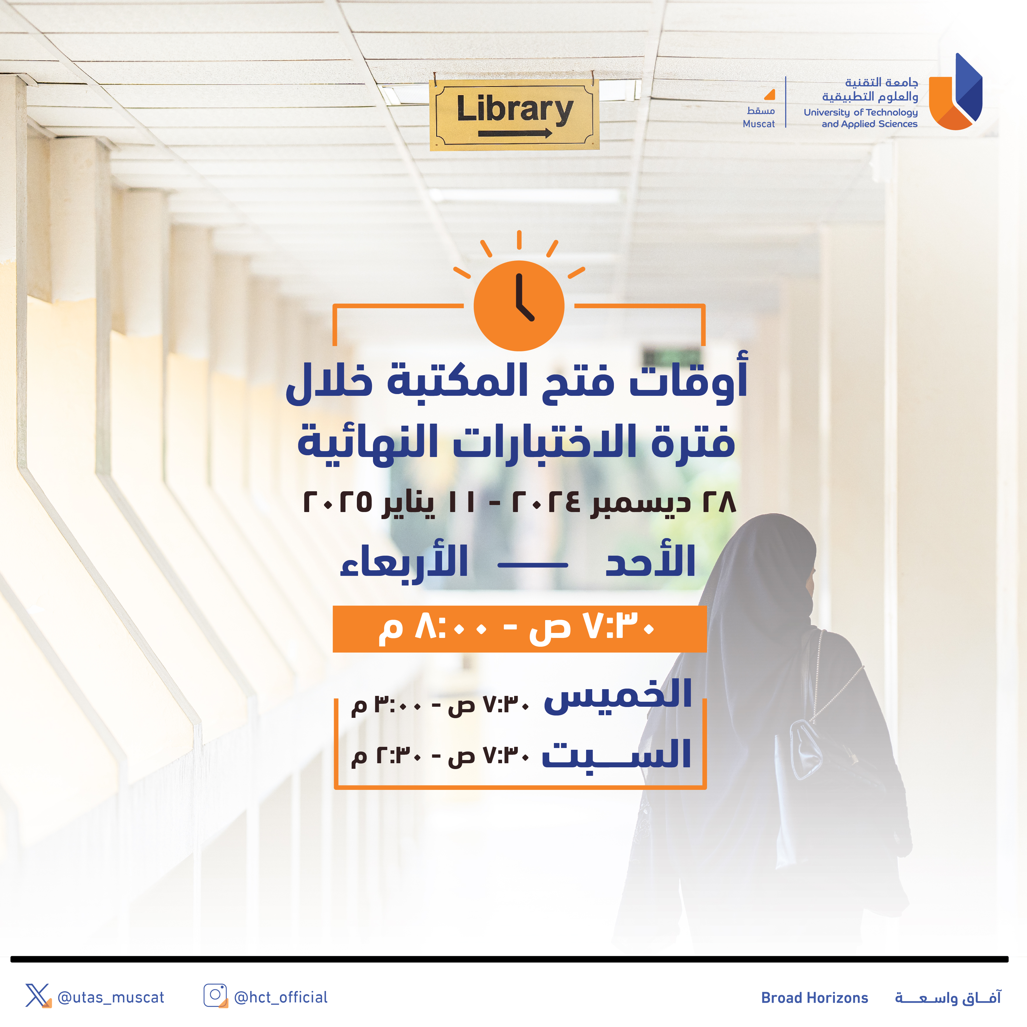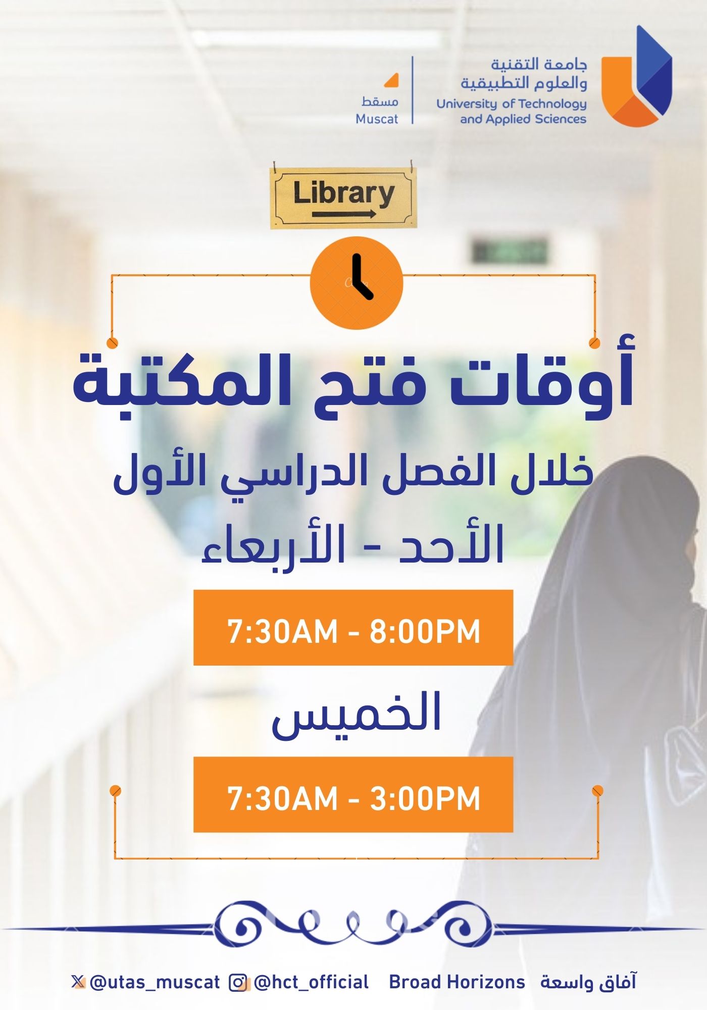 الأحد - الأربعاء: 7:30 صباحًا - 8:00 مساءً